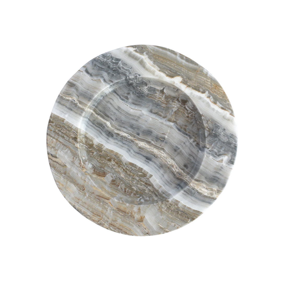 The onda tray is hand-carved in limited-batches at a family-owned stone atelier outside of Mexico...