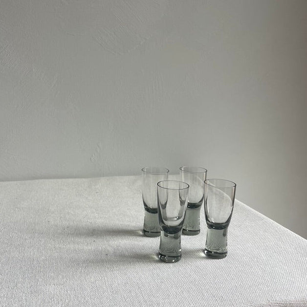 Vintage smokey blue glass tall shot glasses with chunky base. Set of 4. Dimensions Each...