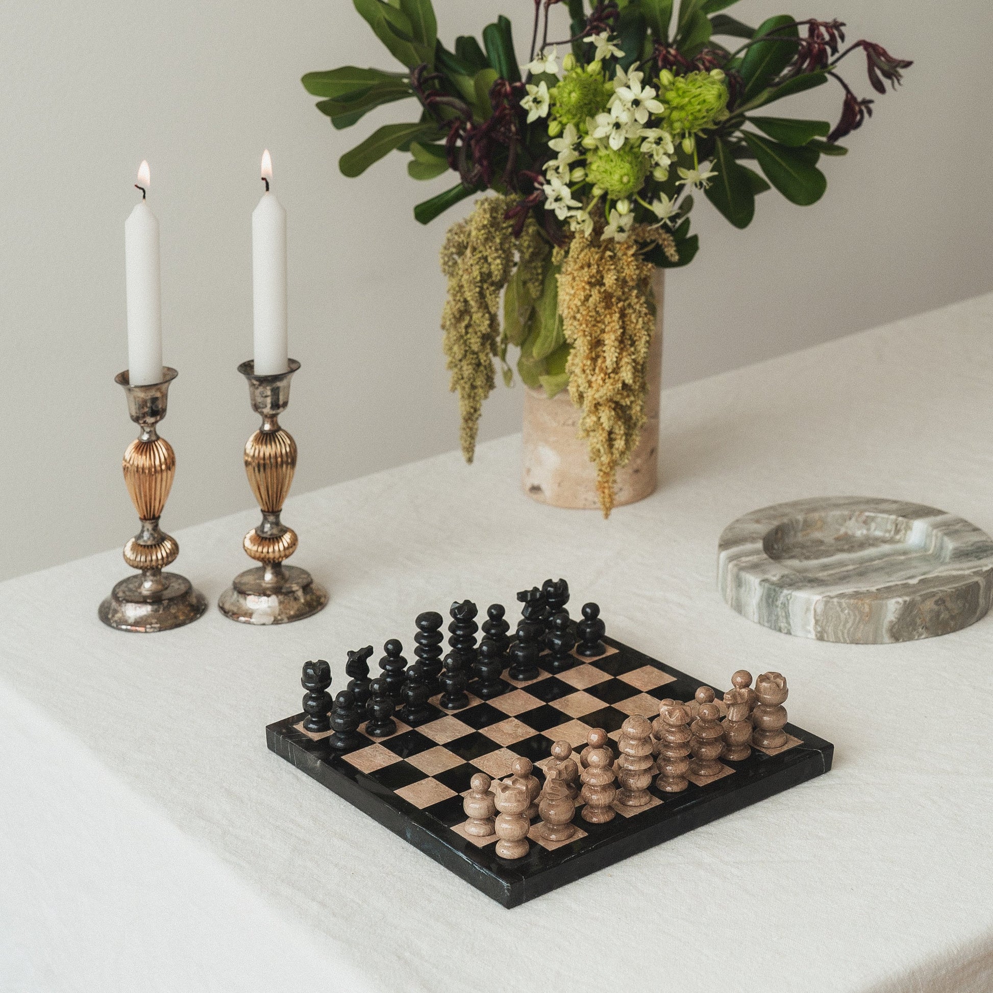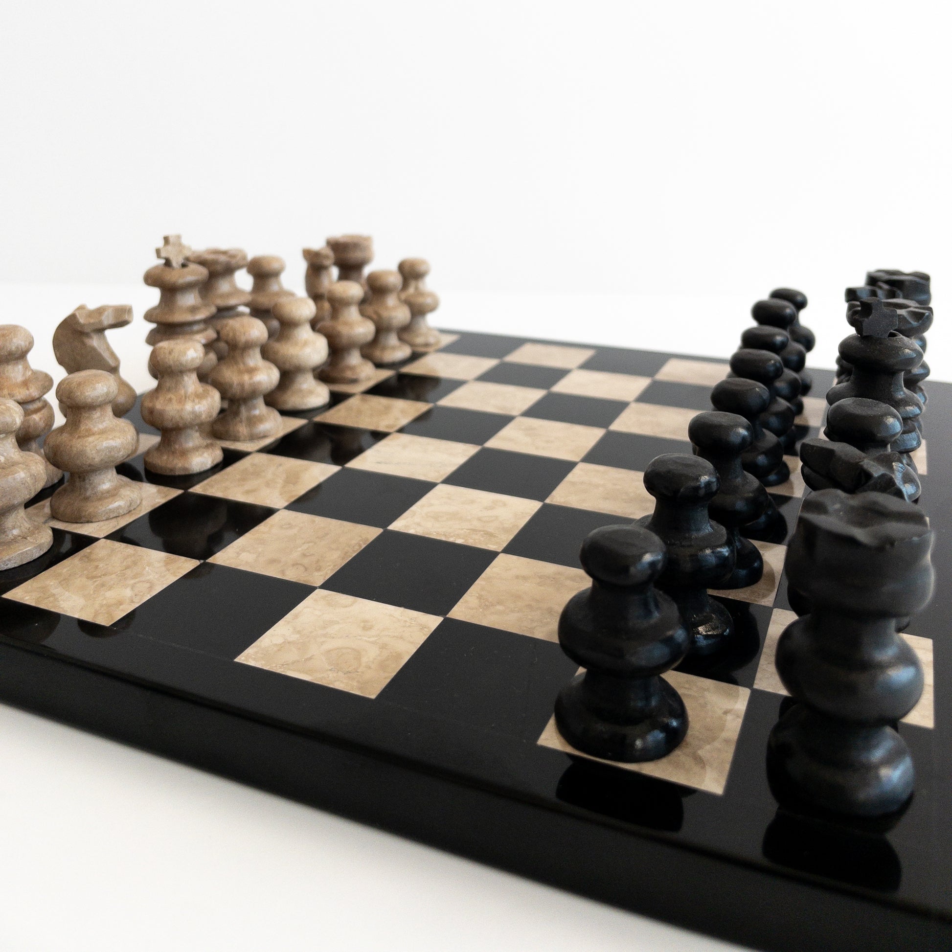 Chess set - travertine & black