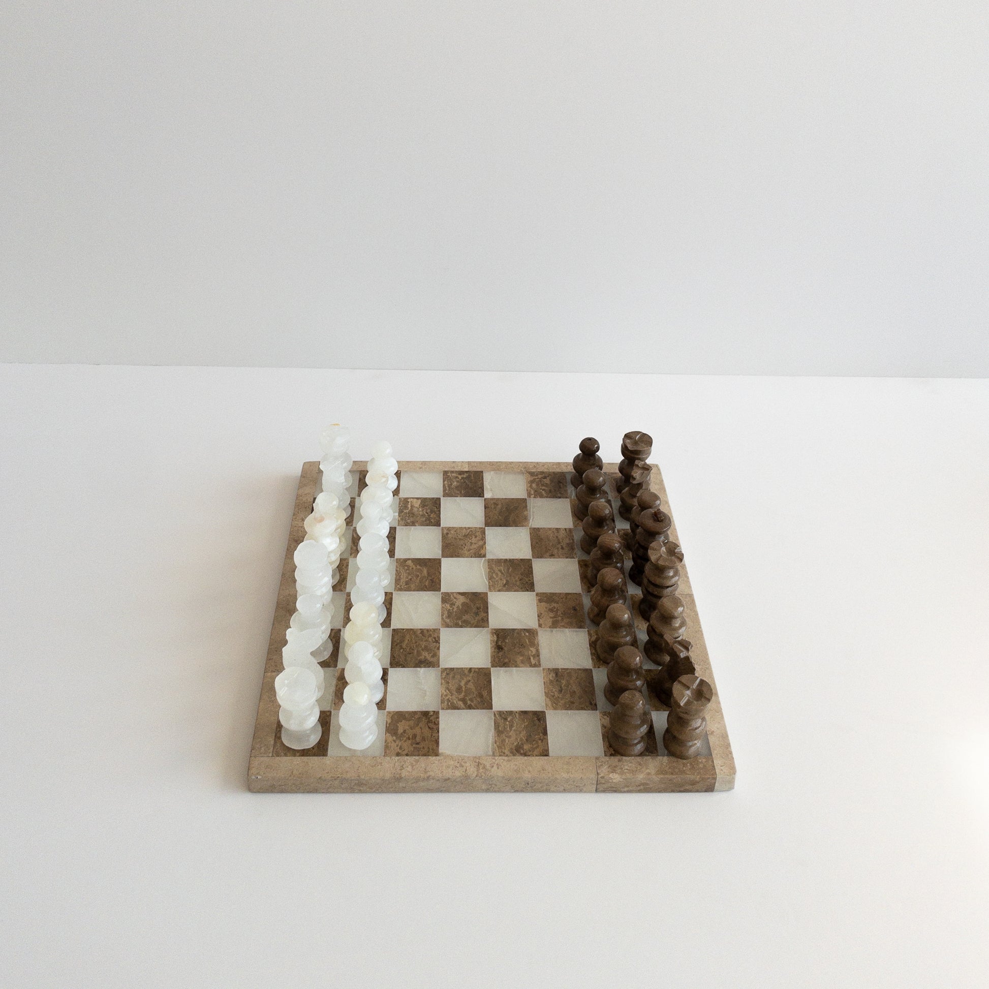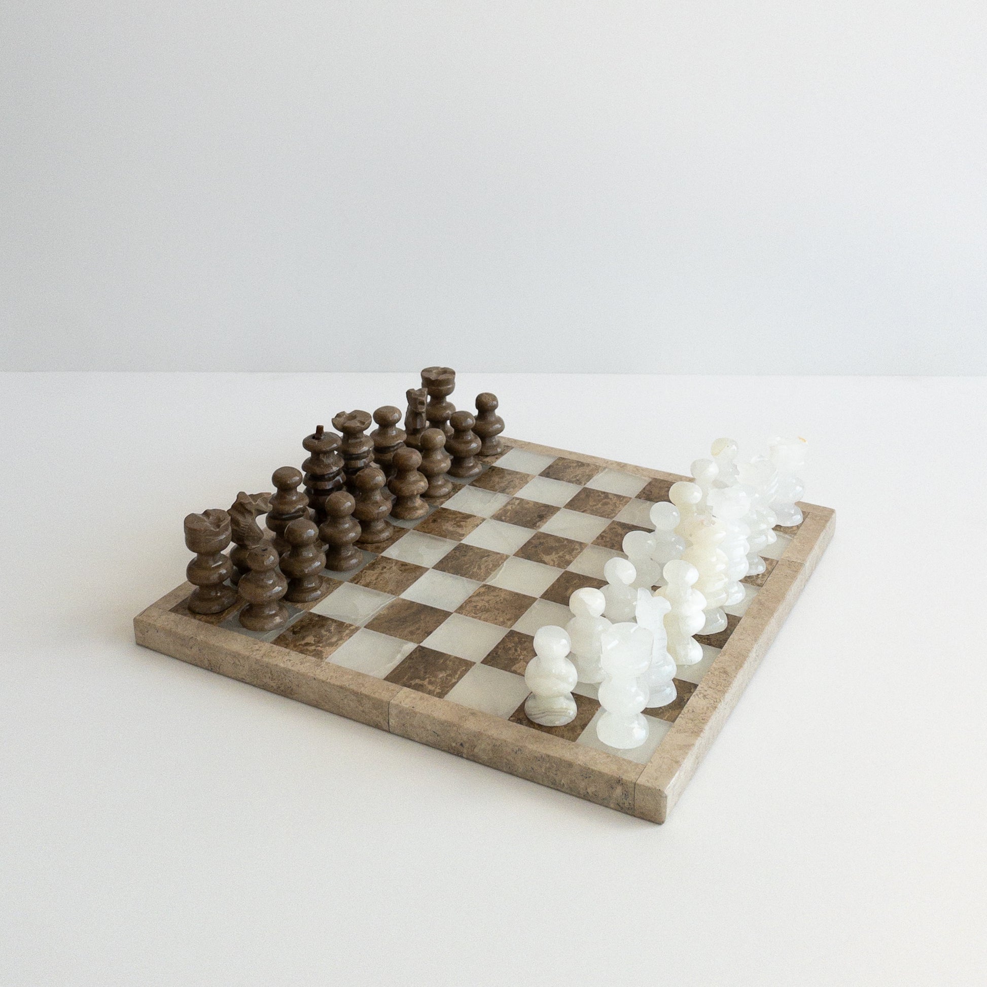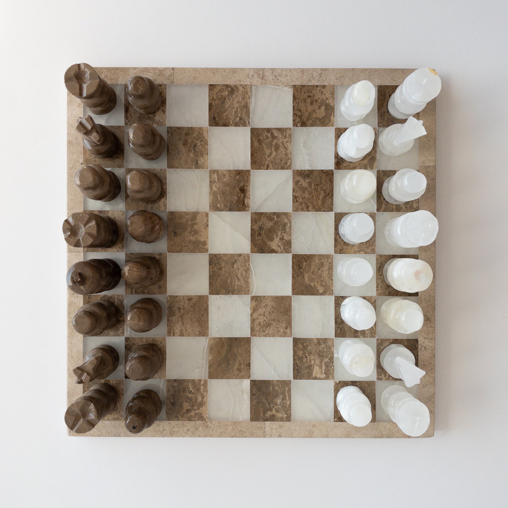 Hand-carved in a stone atelier outside of Mexico City, this marble chess set functions as a great game night staple or just as well as an artful decor piece.
