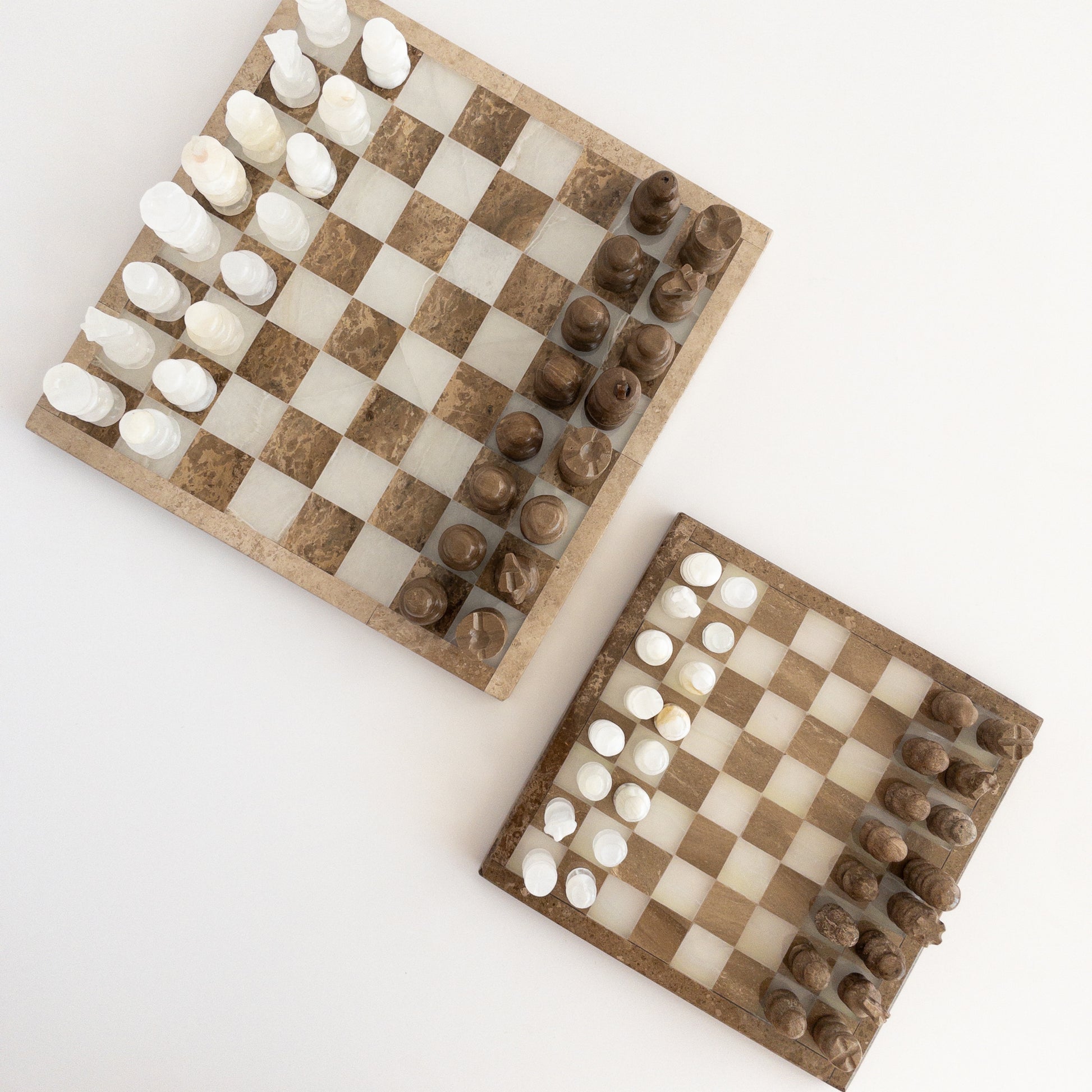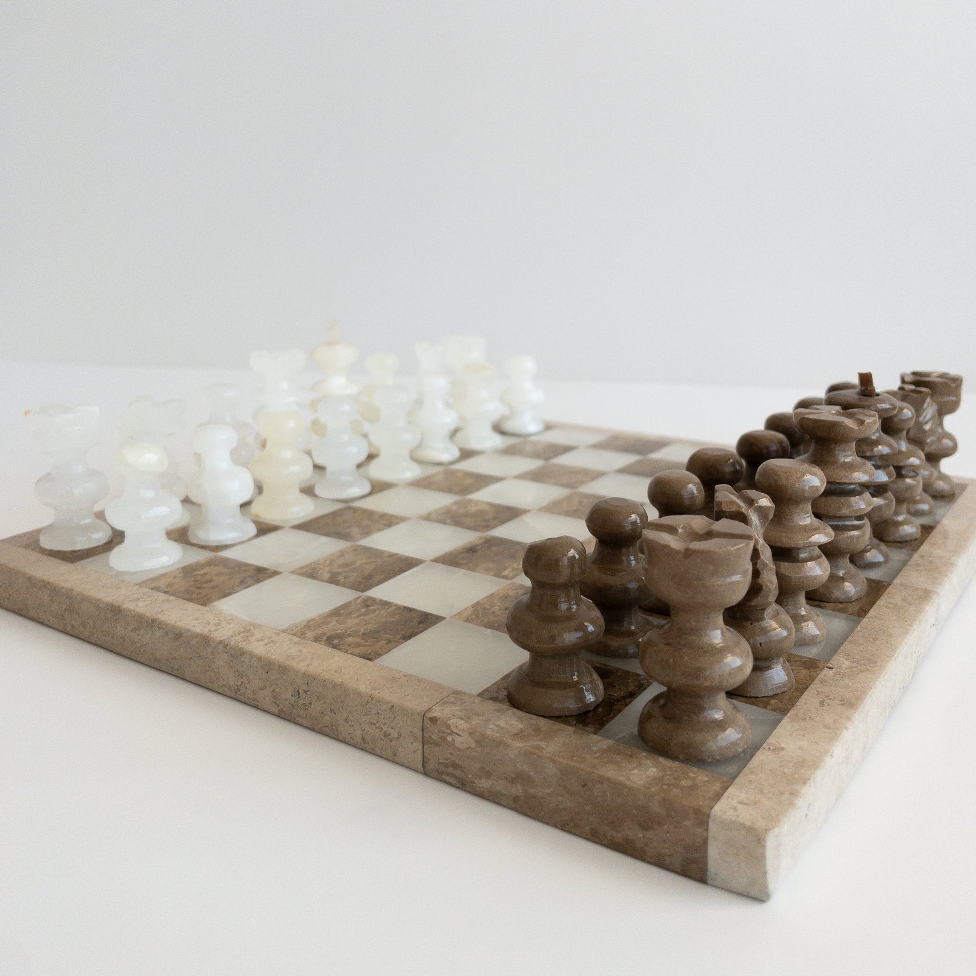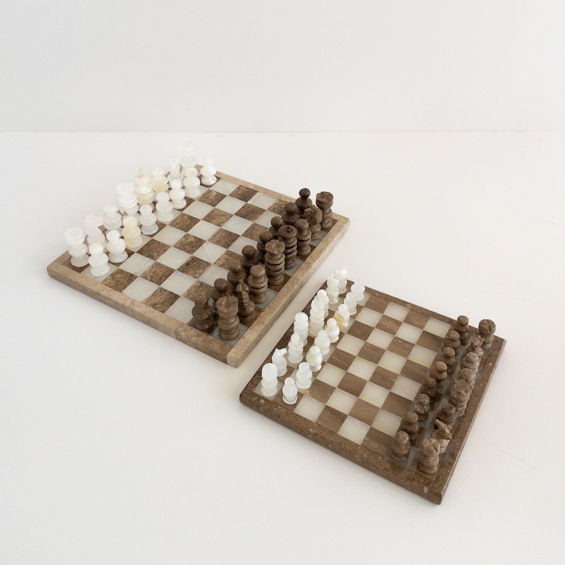 Hand-carved in a stone atelier outside of Mexico City, this marble chess set functions as a great game night staple or just as well as an artful decor piece.