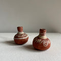 Vintage hand-made small vessels. Made from clay and hand painted in white design. Hold water. Sourced in Mexico City.