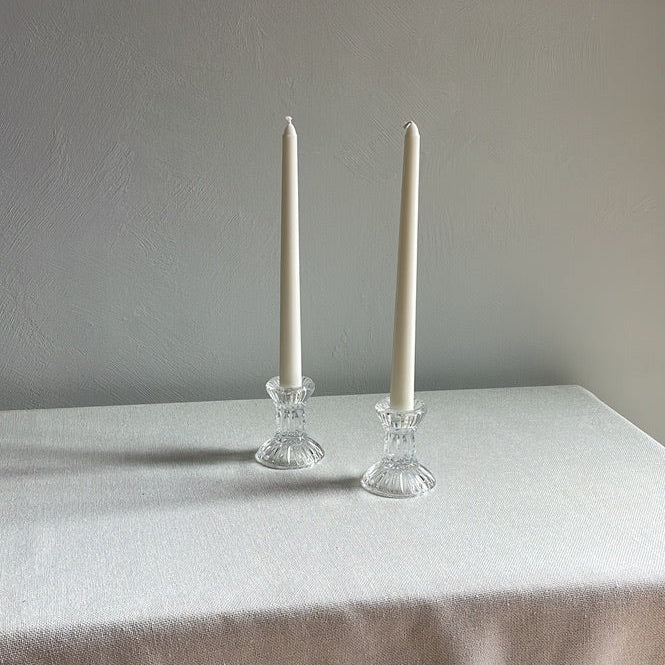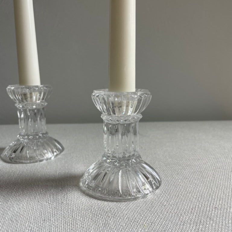 Vintage crystal taper candle holders with pedestal like base.