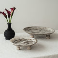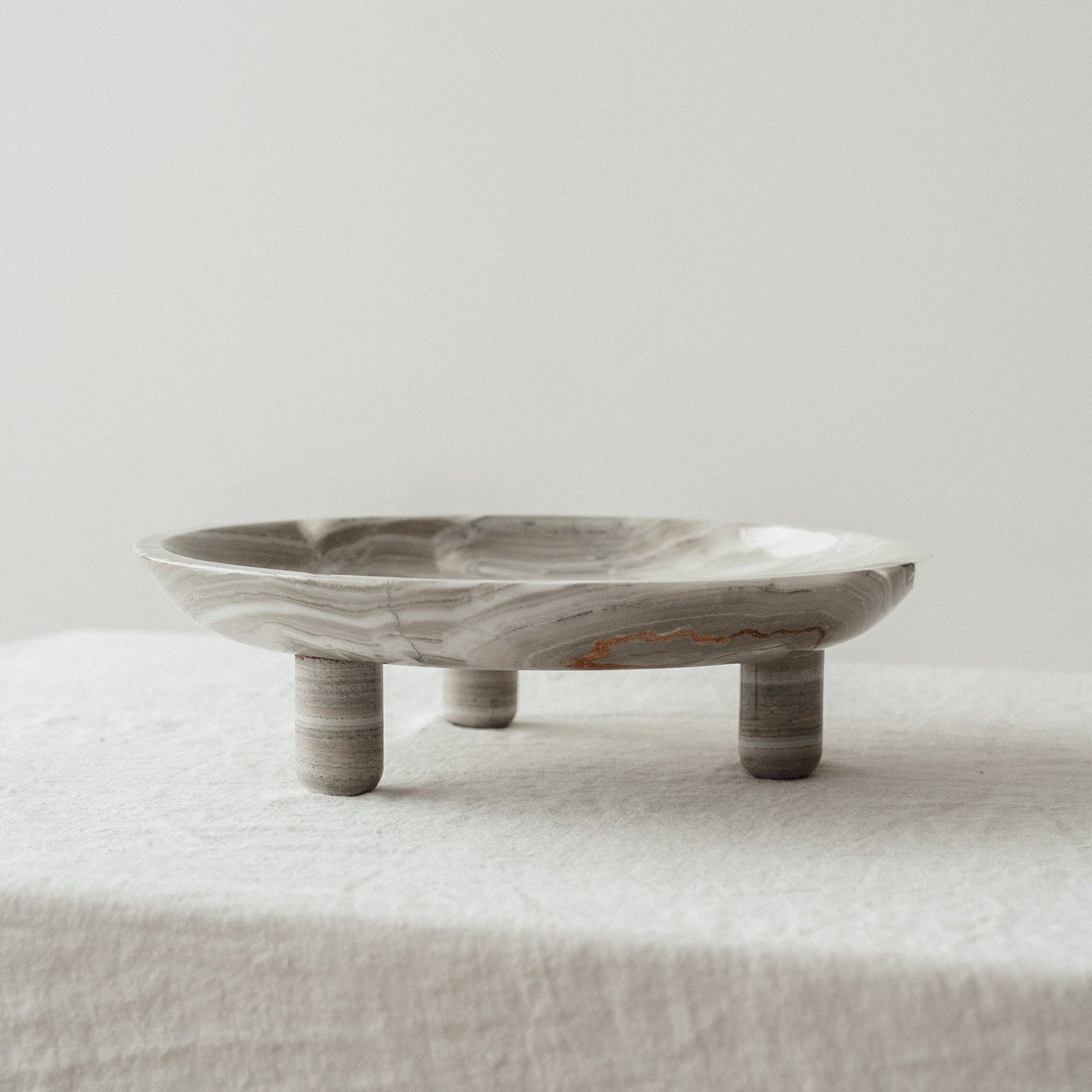 Produced in limited size batches, our footed dishes are hand-carved in a family-owned stone atelier outside of Mexico City by artisan craftsmen. Use this dish as a catch-all to organize keys by the backdoor or to serve up a special dish at your next dinner party (but please see our Care Guide for what foods can and can't go on the finished surface).