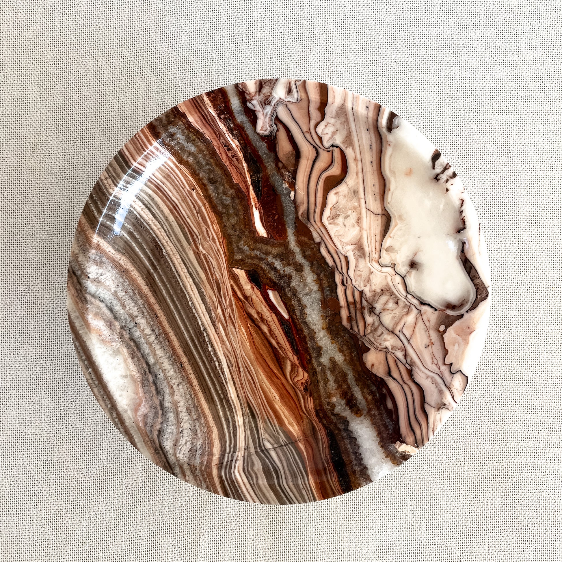 Given this piece is hand-made from natural stone, subtle variations in shape, size, and stone veining should be expected and embraced as part of this piece's beauty.