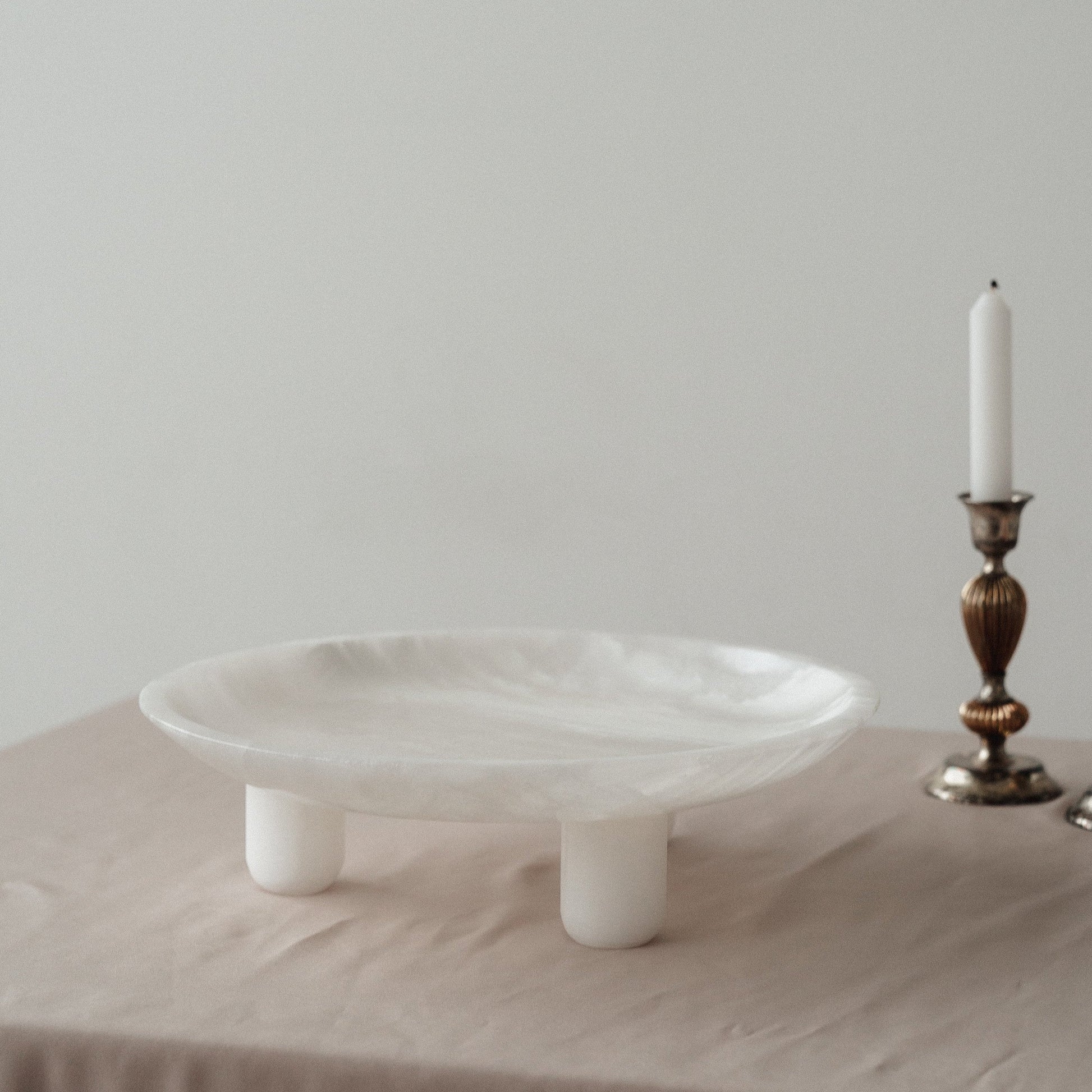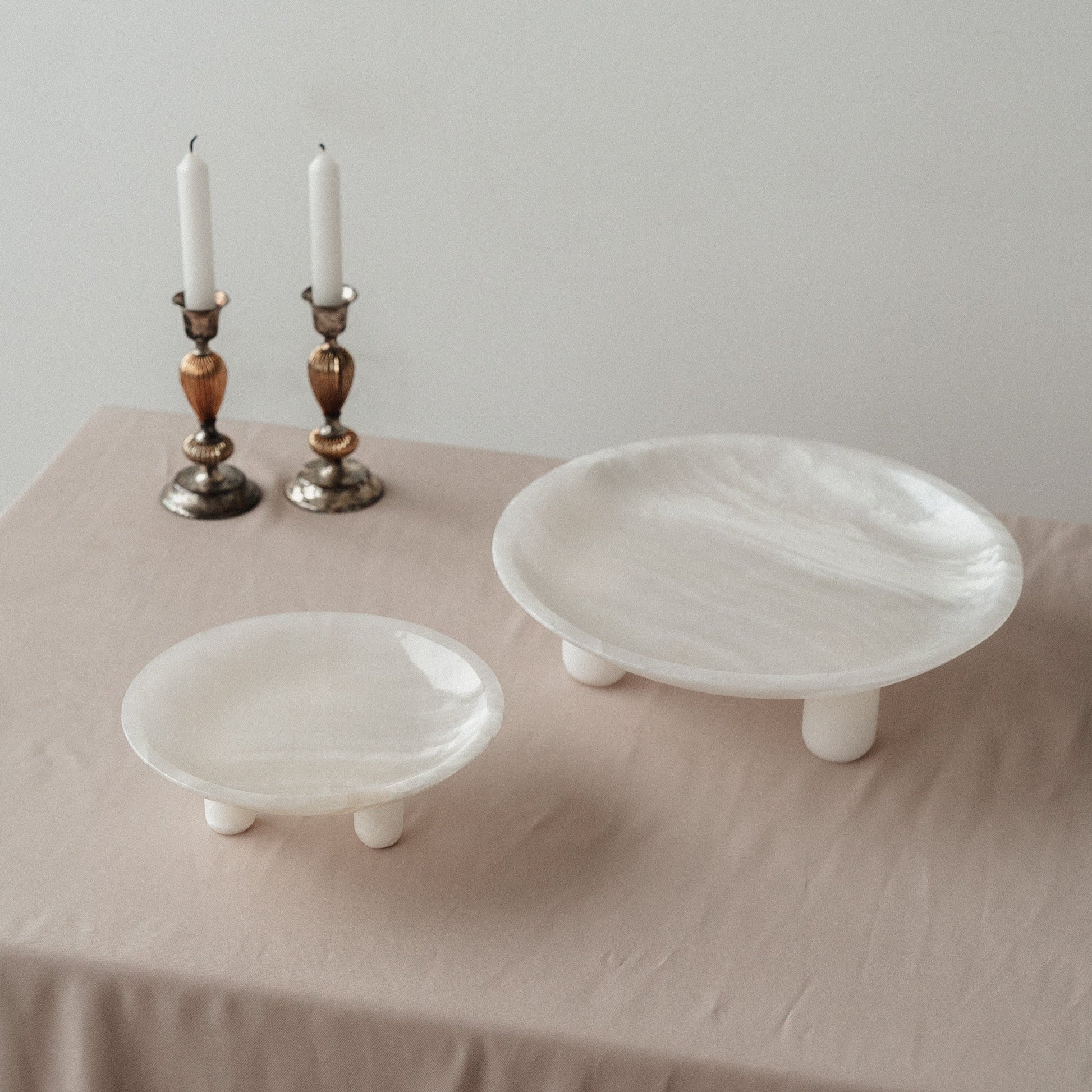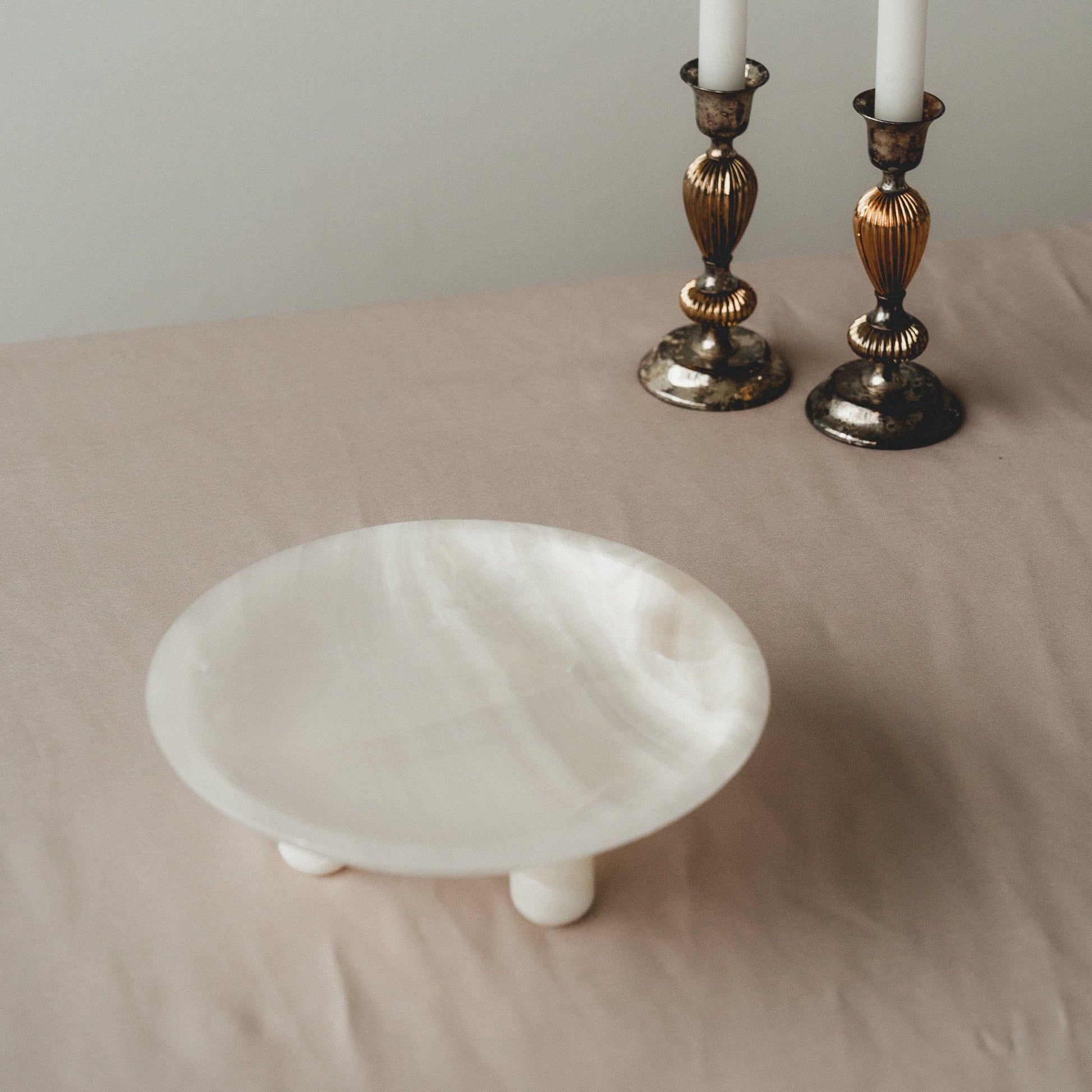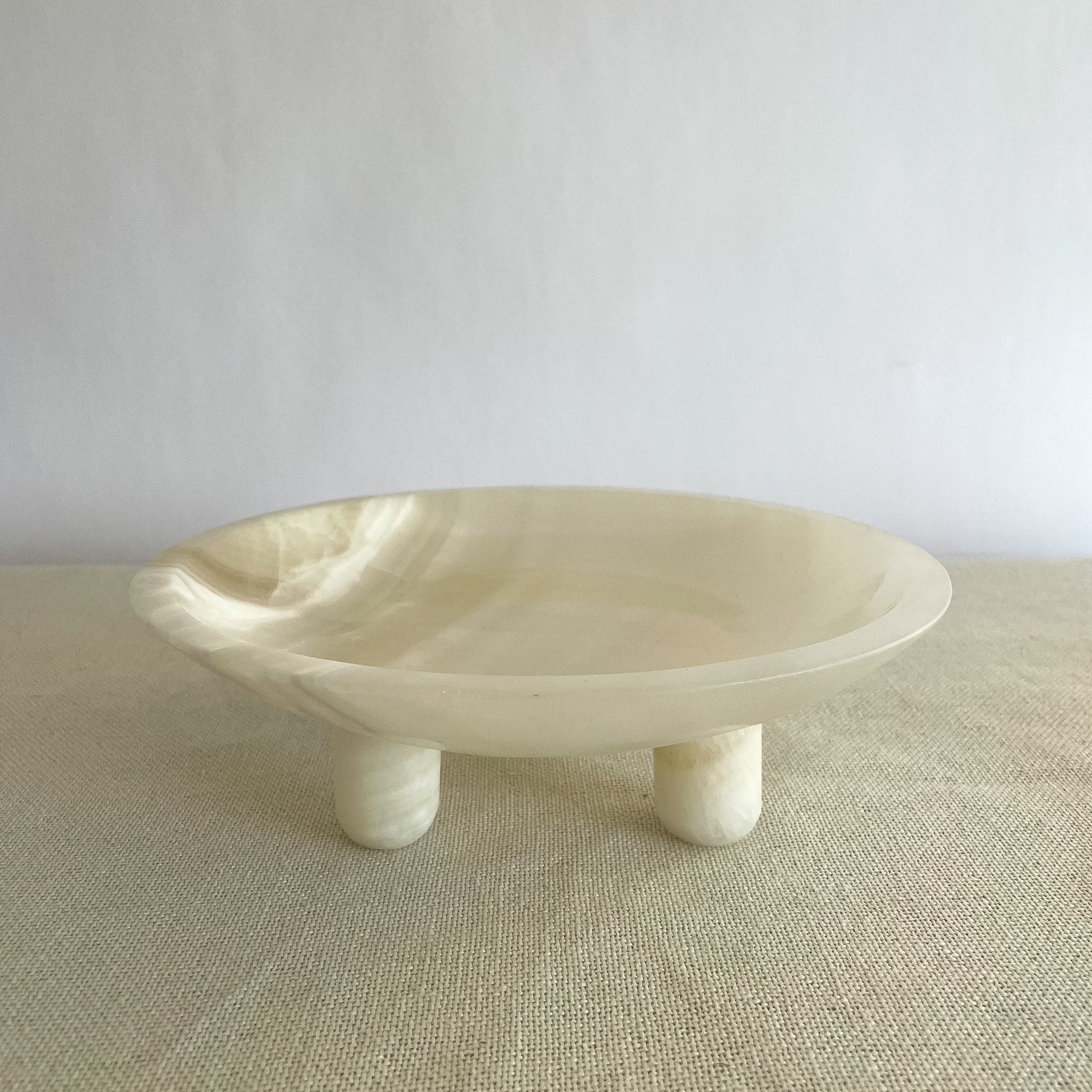 Produced in limited size batches, our footed dishes are hand-carved in a family-owned stone atelier outside of Mexico City by artisan craftsmen. Use this dish as a catch-all to organize keys by the backdoor or to serve up a special dish at your next dinner party (but please see our Care Guide for what foods can and can't go on the finished surface).