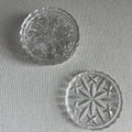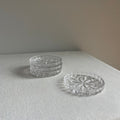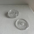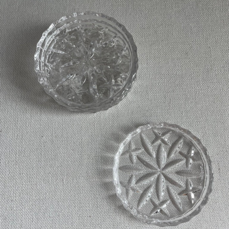 Vintage glass coasters with small lip around edge. Two sets available each with 4 coasters and unique pattern.