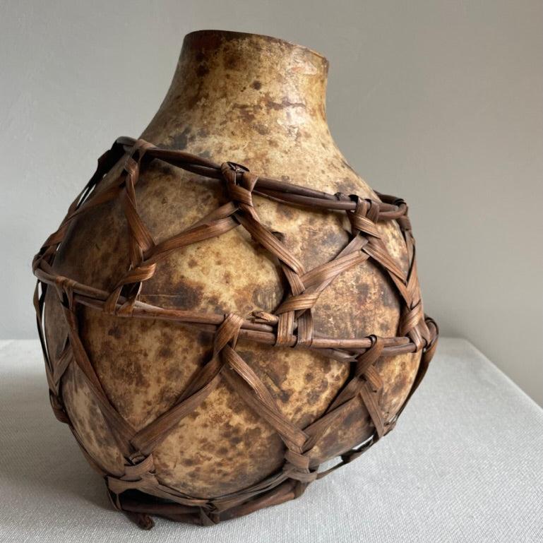 Vintage Mexican rafia wrapped gourde vessel. Sourced in Mexico City.