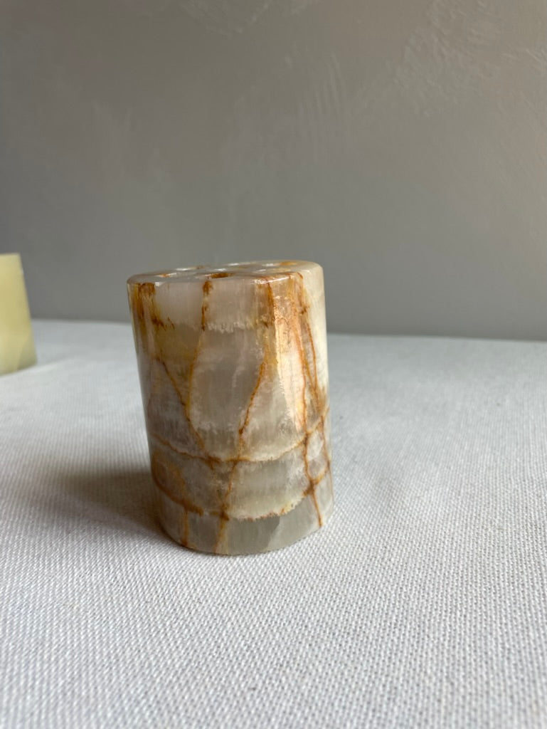 Vintage onyx pencil holders. Four different styles of different stone type, shape & size.