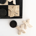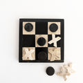 Hand-carved in a stone atelier outside of Mexico City, this game set functions as a great game night staple or just as well as an artful decor piece. Set is made from black marble and travertine.
