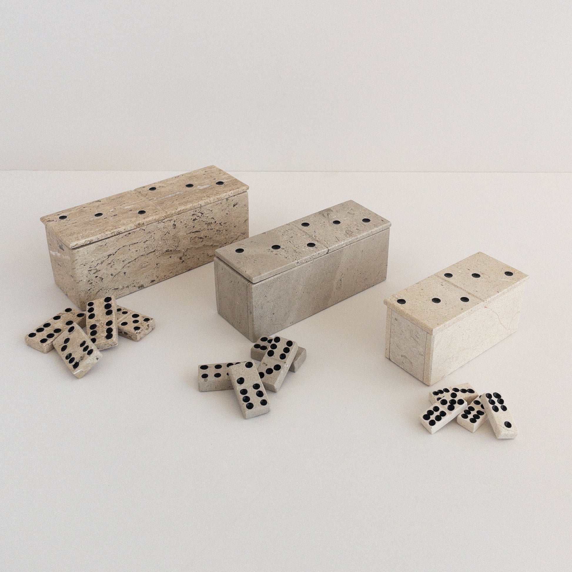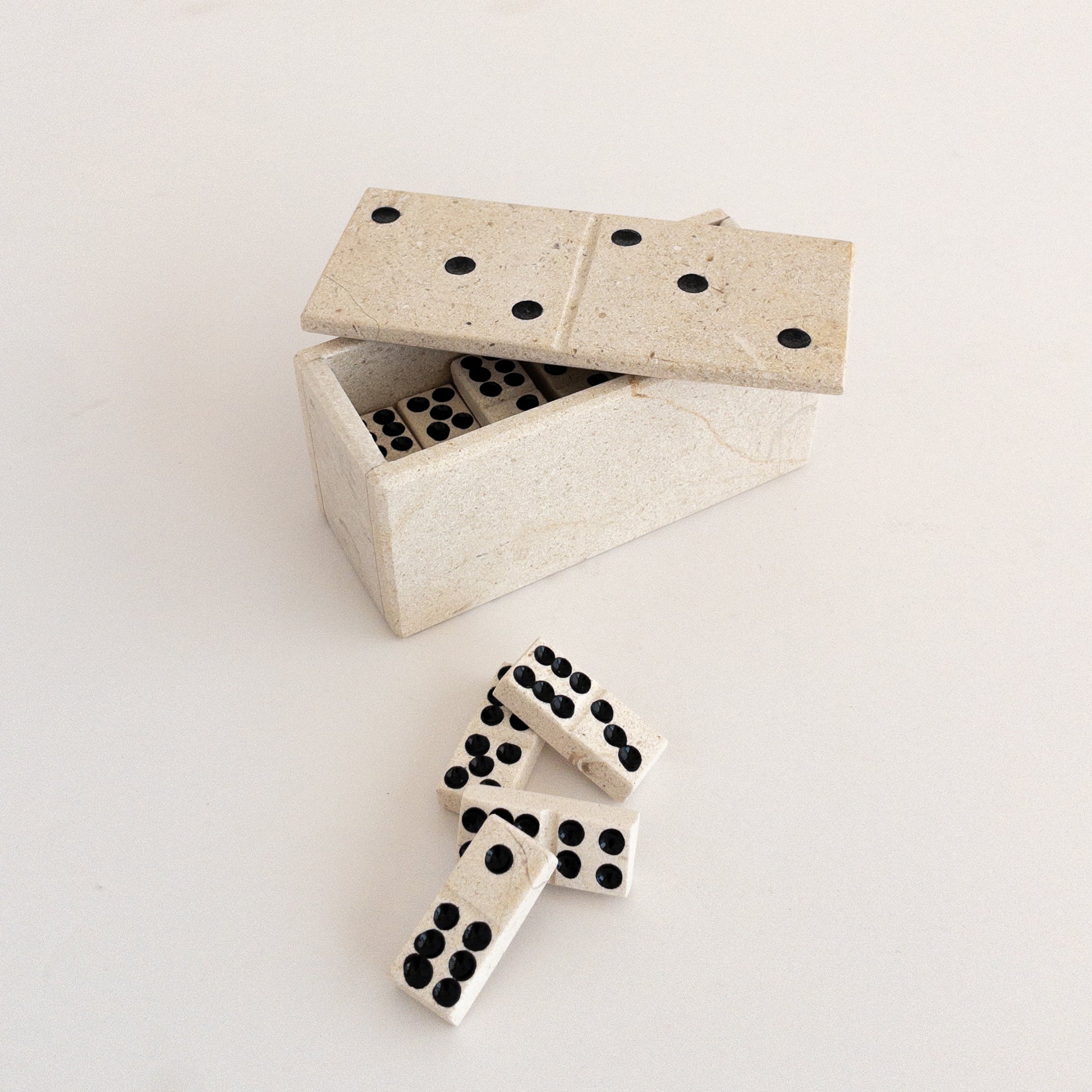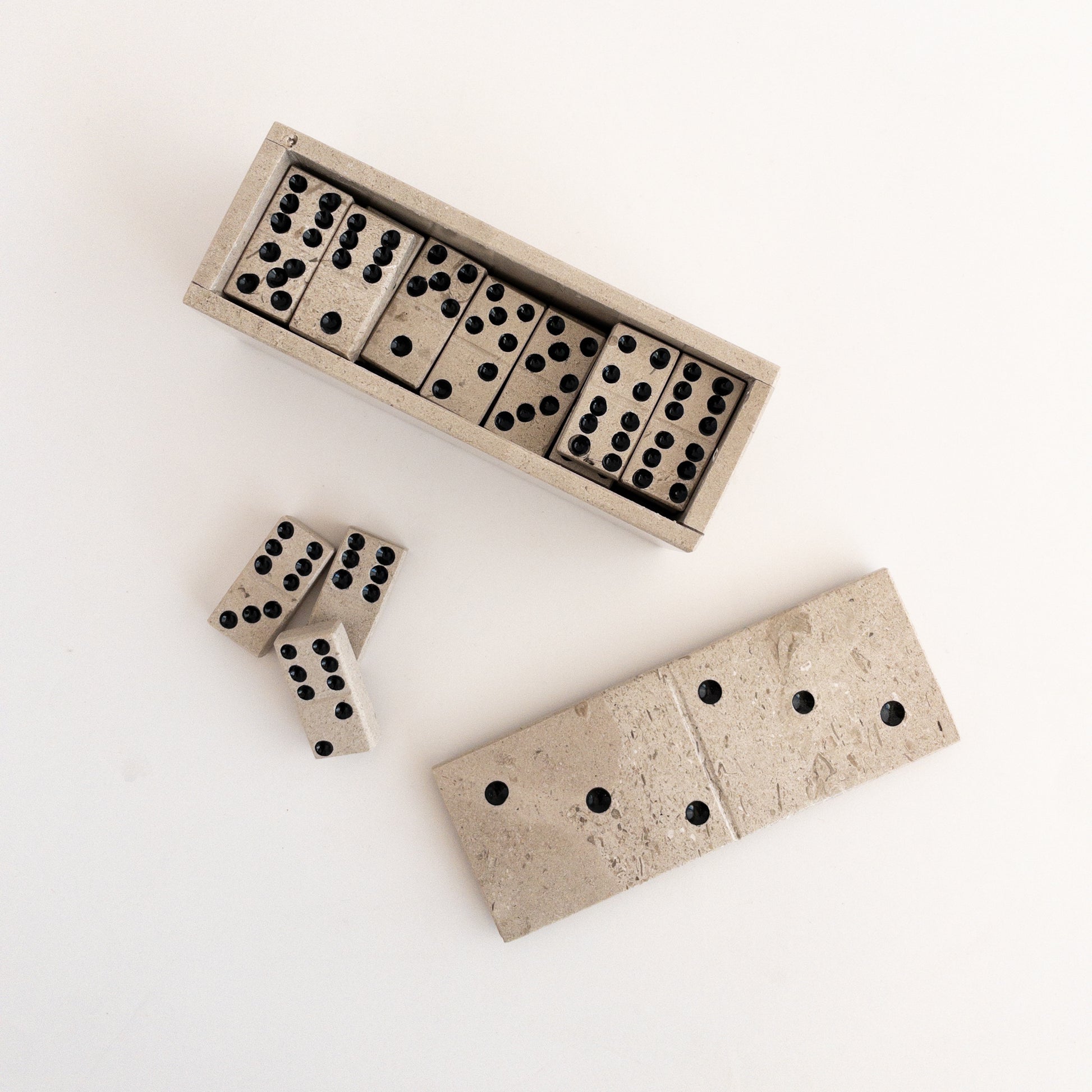 Hand crafted marble domino set. Hand-carved in a stone atelier outside of Mexico City, this domino set is just as functional as it is beautiful.