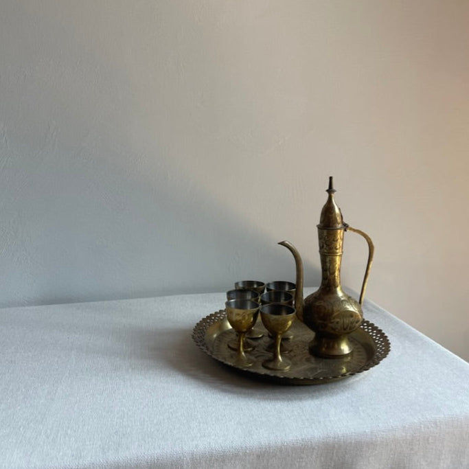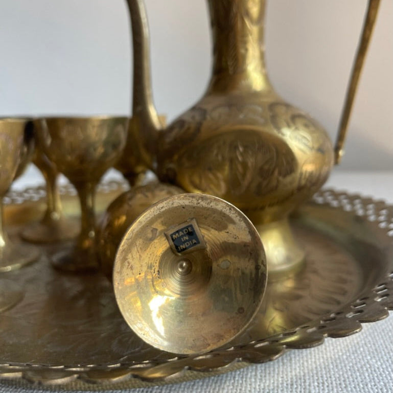 Tray measures approximately 9" x 9". Teapot is 9.5" tall. Cup have 1.5" mouth. Set weighs 2lbs.