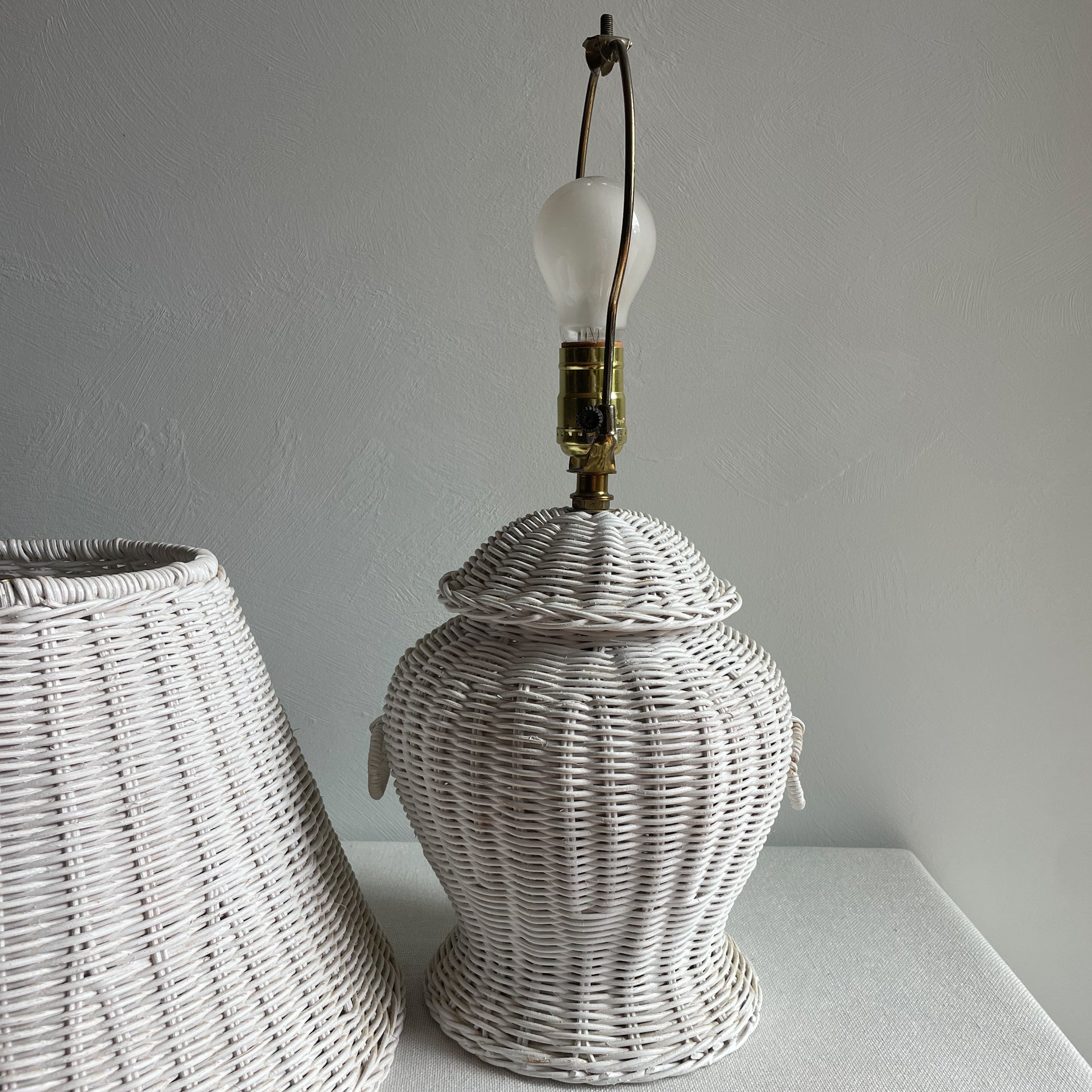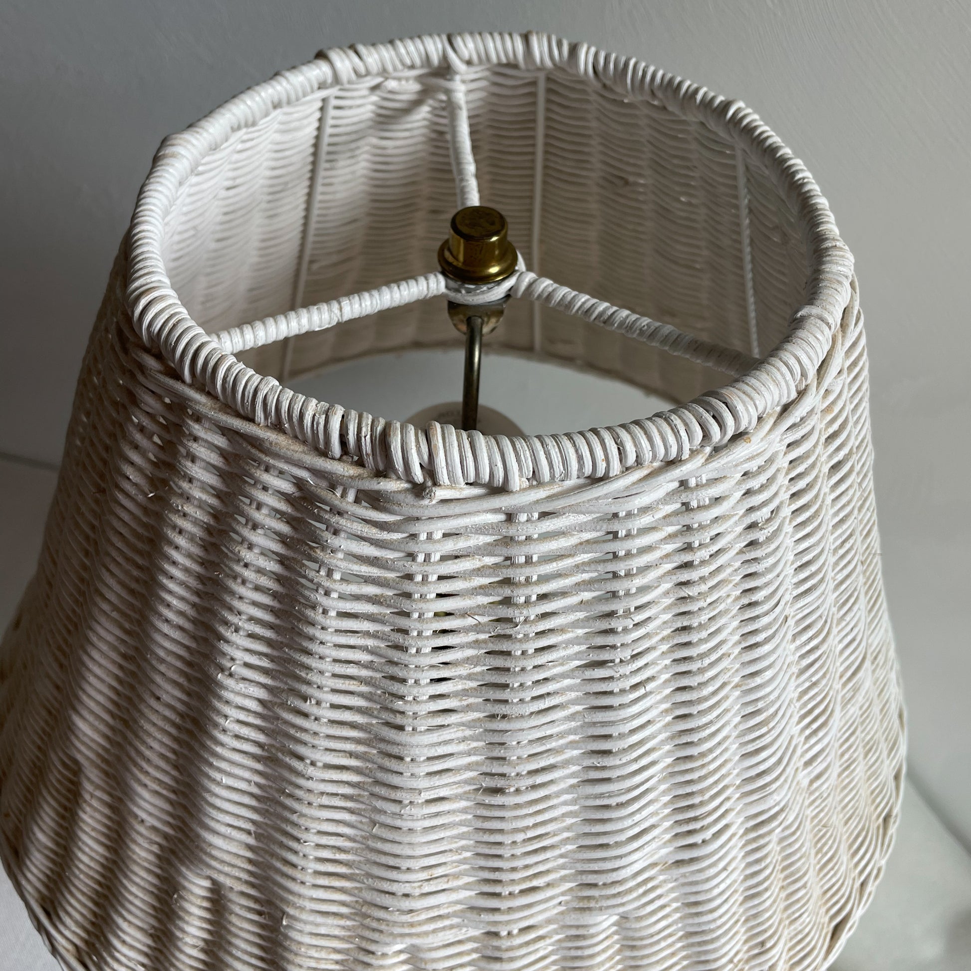 White wicker table lamp with matching wicker shade. Fully functioning.